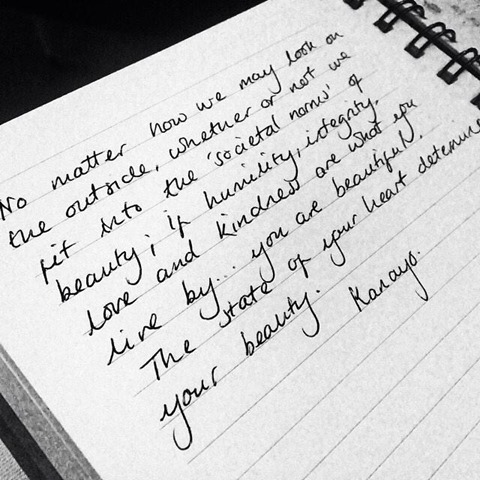 “I’m beautiful because God made this way and if he did then who am I (or anyone else for that matter) to argue? It takes practice to start believing that though and many years of dissatisfaction to even realise it”.